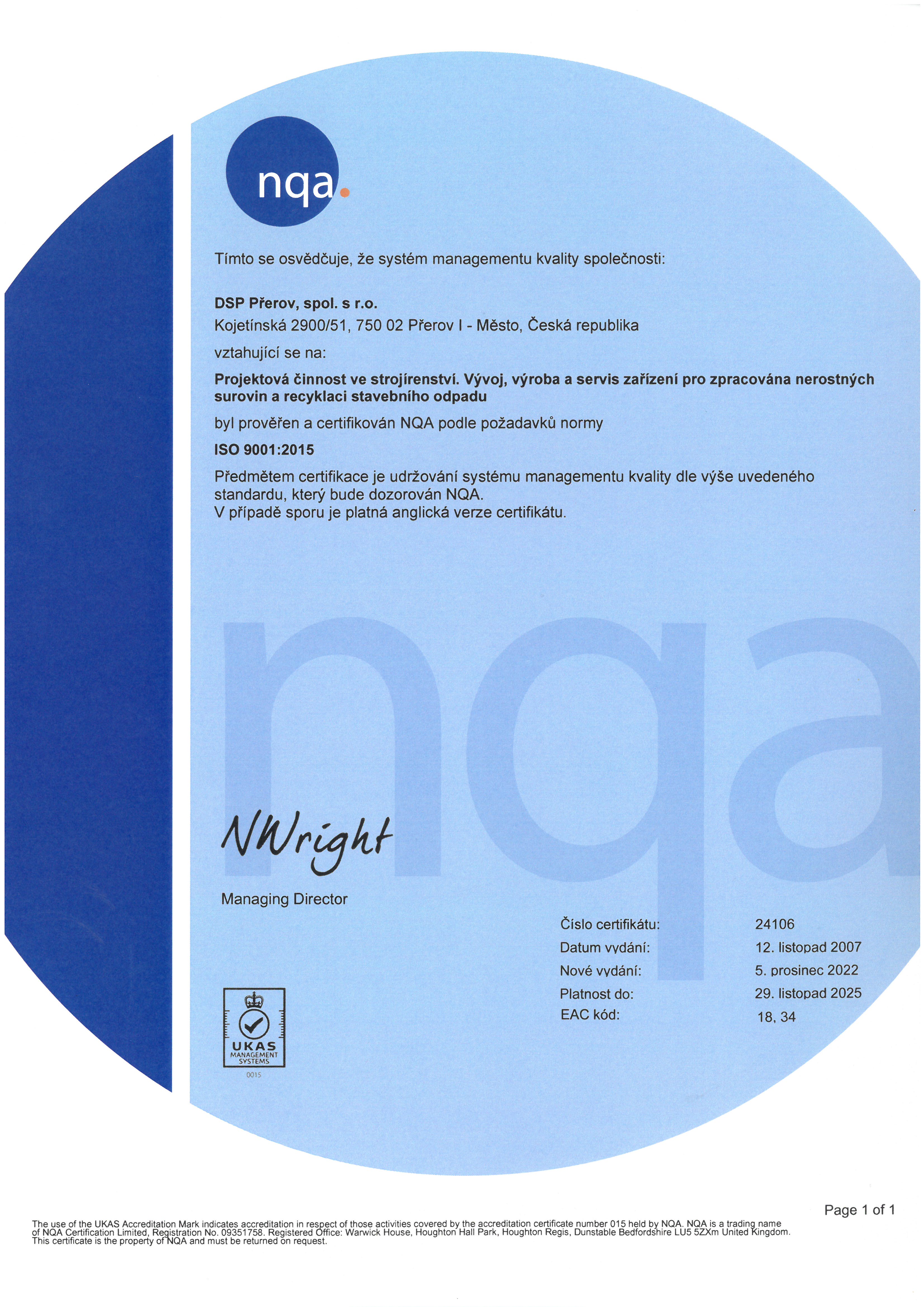 Společnost DSP Přerov je lídrem v oblasti drticích, třídicích a mycích systémů s kompletní řadou drtičů, třídičů, podavačů, odvodňovačů a dalších strojů. Portfolio produktů se uplatňuje v široké škále průmyslových odvětví, mezi něž patří kamenolomy, štěrkovny, terénní úpravy, železniční a silniční stavitelství, drobná těžba, stavebnictví a demolice, nakládání s odpady a recyklace.